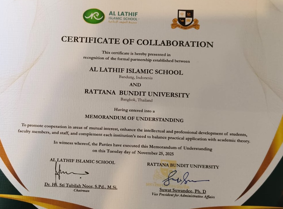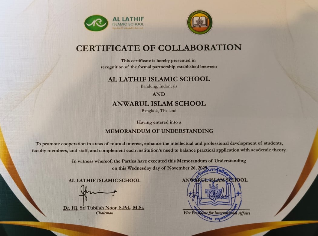 AL-LATHIF ISLAMIC SCHOOL (AIS) Bandung adalah Sekolah Islam Internasional dengan kurikulum Cambridge yang memadukan antara Ilmu Pengetahuan, Teknologi dan Islam serta Program Tahfidz dengan mengedepankan pendidikan Islam dalam pembentukan karakter anak. Perpaduan kurikulum yang kami gunakan memberikan ciri khas tersendiri dalam kehidupan pembelajaran di Al-Lathif.